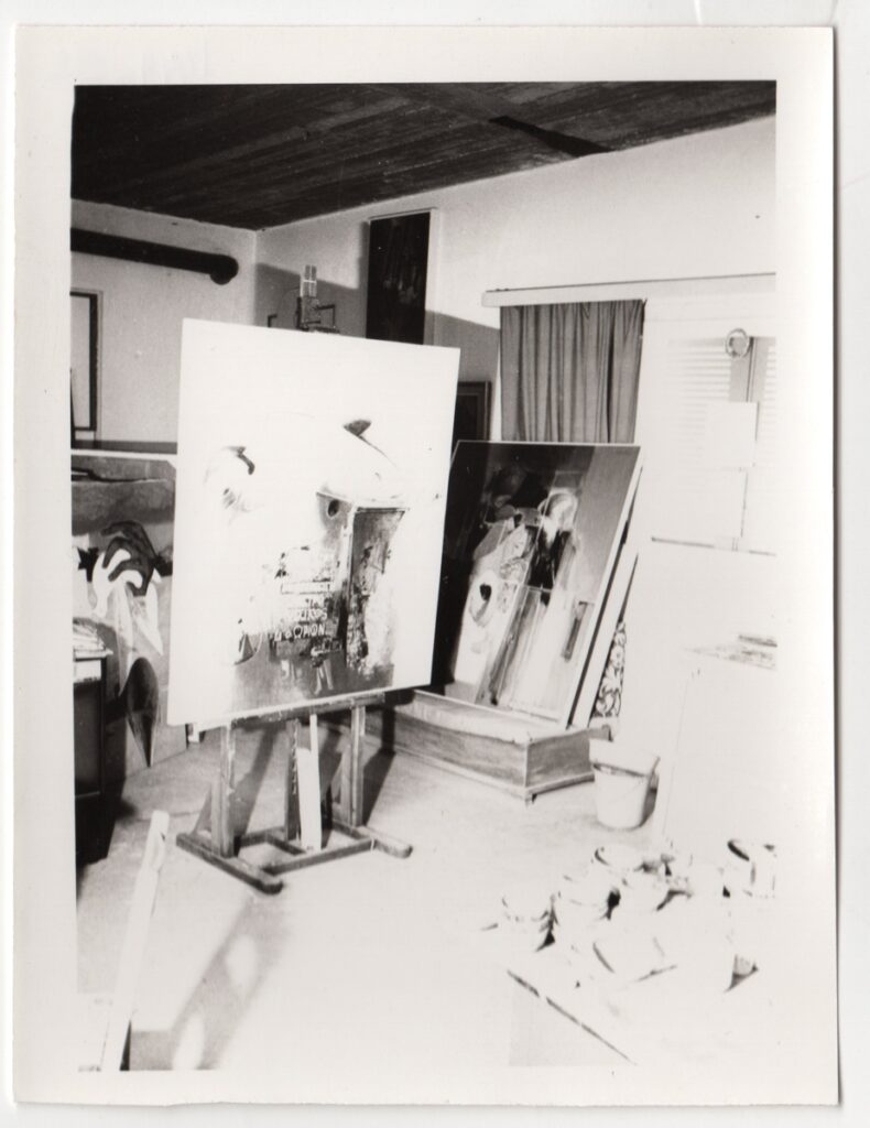 Φωτογραφία, α/μ, σε φωτογραφικό χαρτί, 12,0×9,0 εκ. Το εργαστήριο του ζωγράφου Αλέκου Κοντόπουλου.