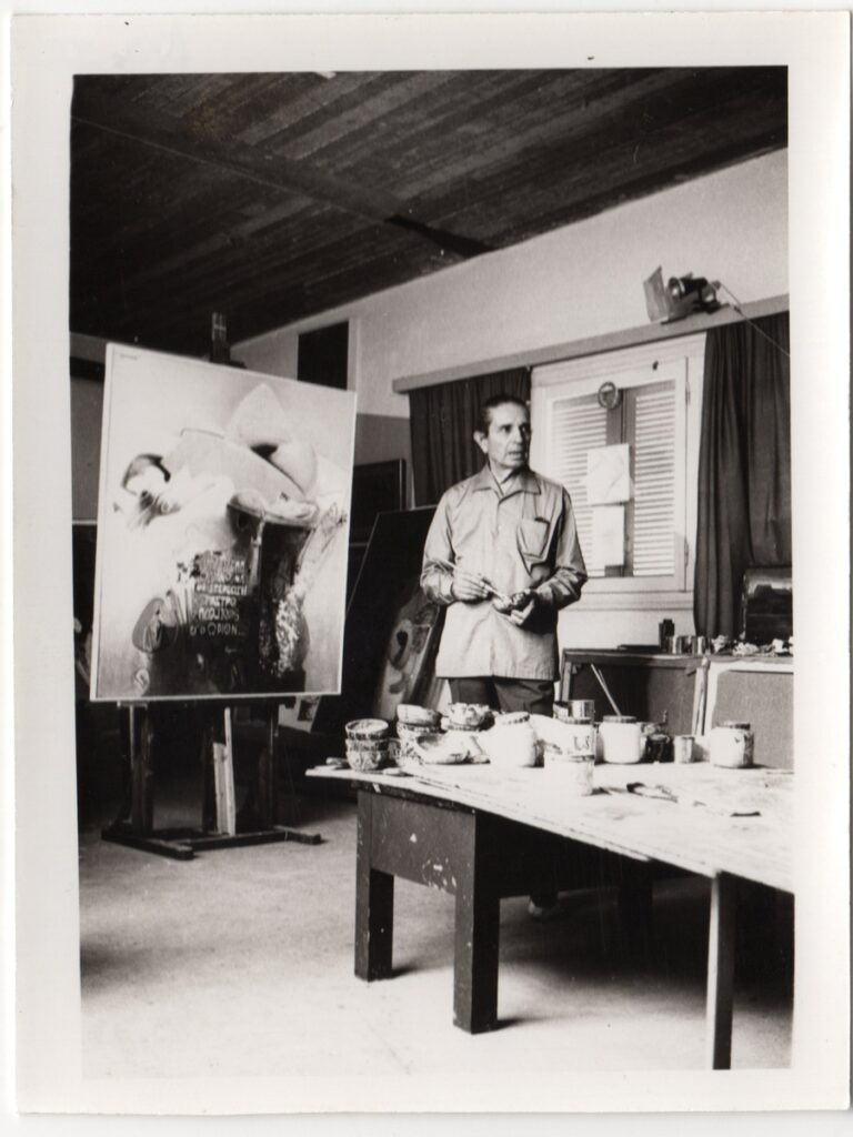 Φωτογραφία, α/μ, σε φωτογραφικό χαρτί, 12,0×9,0 εκ. Ο ζωγράφος Αλέκος Κοντόπουλος στο εργαστήριό του.