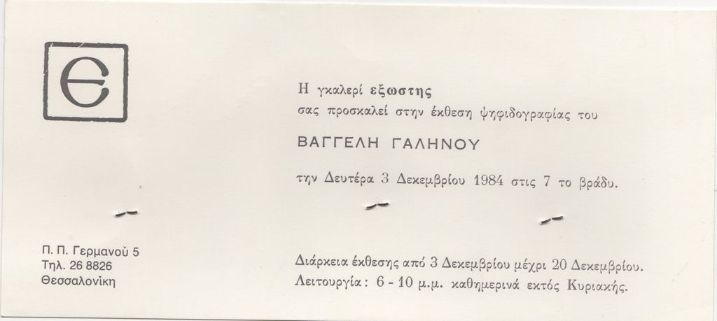 Απόκομμα, χαρτί, 3 φφ, συρραμμένο σε έντυπο, 21,5×9,5 εκ., στα ελληνικά, δημοσίευσης κριτικής έκθεσης του Δημήτρη Περδικίδη, η οποία διεξάγεται στην Γκαλερί Νέες Μορφές στην Αθήνα.