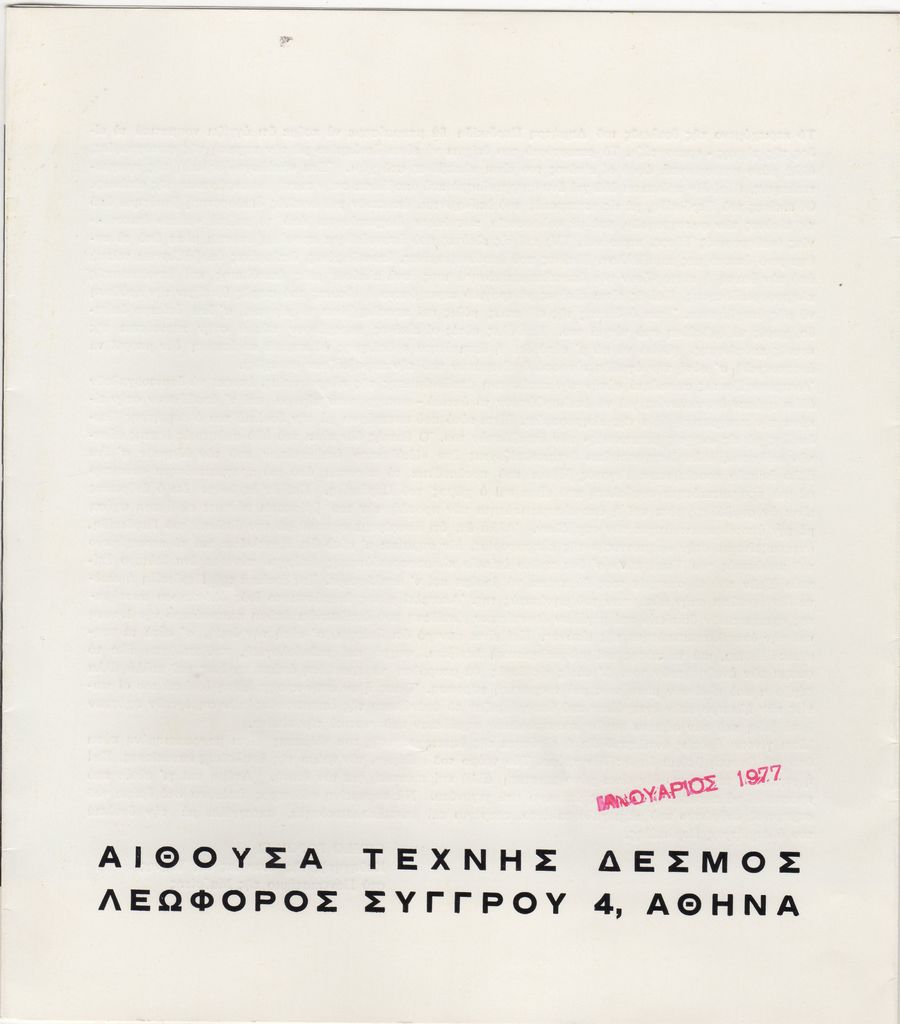 Το έντυπο περιέχει βιογραφικό σημείωμα, κείμενο- κριτική για το έργο του καλλιτέχνη και εικονογράφηση.