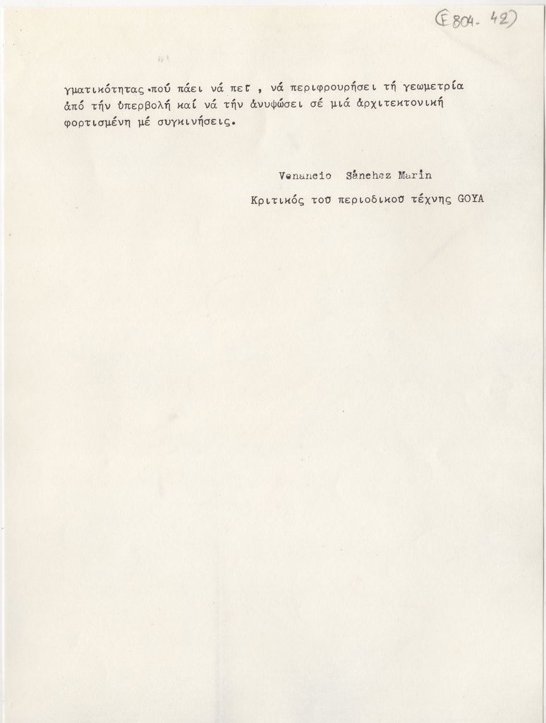 Περιέχει κείμενα των Venaneio Sánehez Marin και Σάνιας Παπά καθώς και αναλυτικό βιογραφικό σημείωμα του καλλιτέχνη.