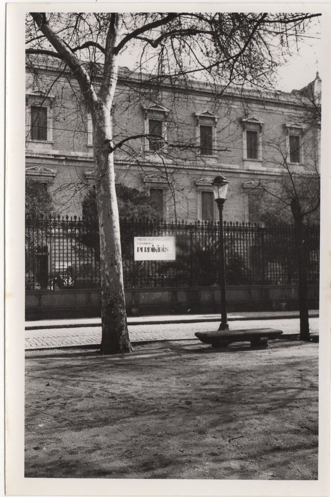 Φωτογραφία, α/μ, φωτογραφικό χαρτί, 18×12 εκ., εξωτερικού χώρου όπου διεξήχθη πιθανόν έκθεση του Δημήτρη Περδικίδη.