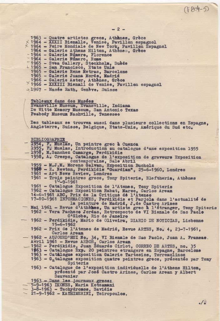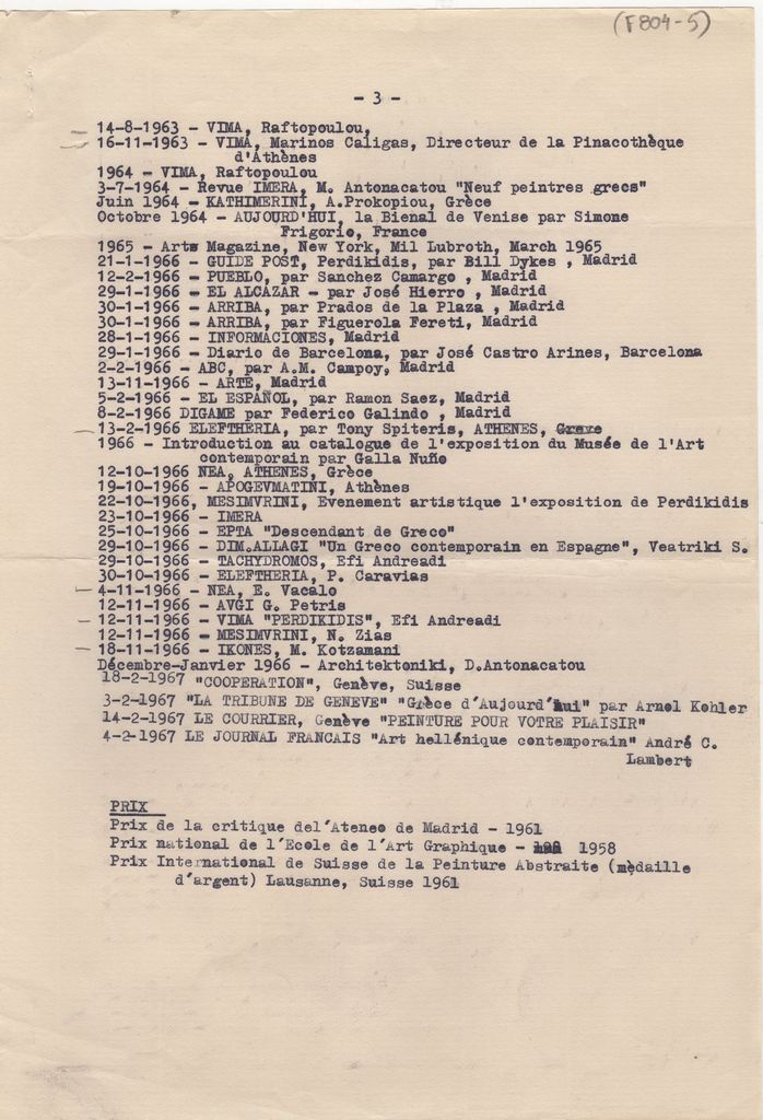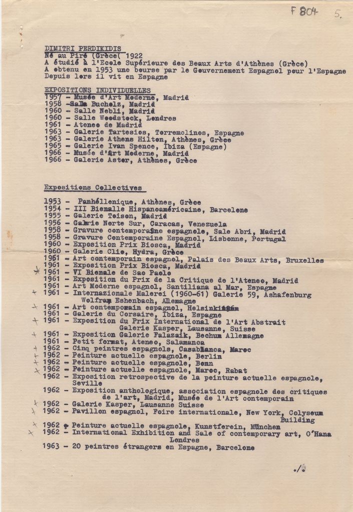 Βιογραφικό, δακτυλόγραφο, χαρτί, 3 φφ, 31×21,5 εκ., στα γαλλικά, του Δημήτρη Περδικίδη.