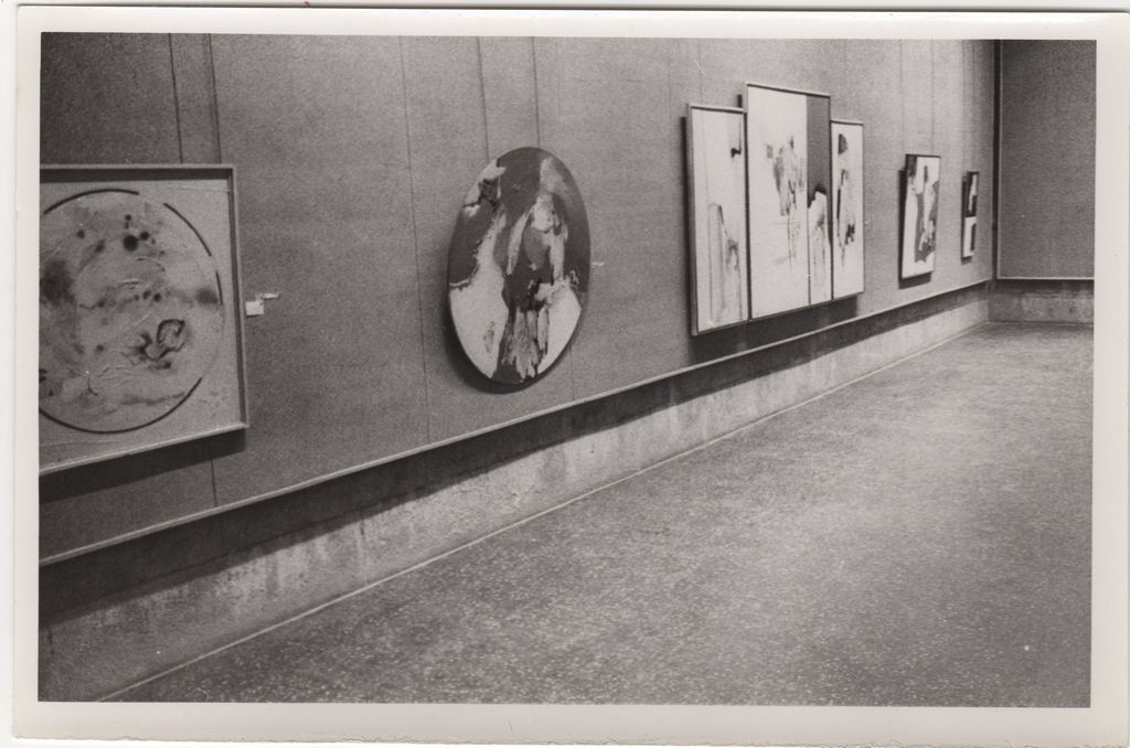 Φωτογραφία, α/μ, φωτογραφικό χαρτί, 12×18 εκ., εκθεσιακού χώρου, στον οποίο παρουσιάζονται έργα του Δημήτρη Περδικίδη.