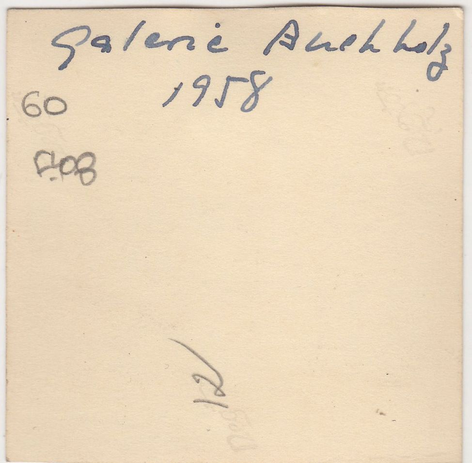 Φωτογραφία, α/μ, φωτογραφικό χαρτί, 6×6 εκ., έργου του Δημήτρη Περδικίδη, το οποίο παρουσιάστηκε στην Galerie Buchhlolz το 1958.