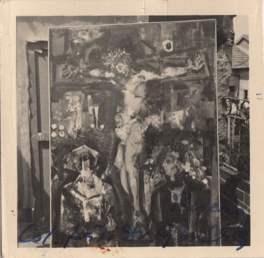 Φωτογραφία, α/μ, φωτογραφικό χαρτί, 6×6 εκ., έργου του Δημήτρη Περδικίδη, το οποίο παρουσιάστηκε στην Galerie Buchholz το 1958.