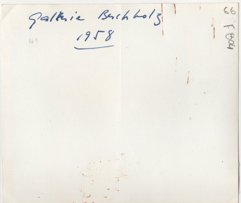 Φωτογραφία, α/μ, φωτογραφικό χαρτί, 10.5×12 εκ., έργου του Δημήτρη Περδικίδη, το οποίο παρουσιάστηκε στην Galerie Buchholz το 1958.