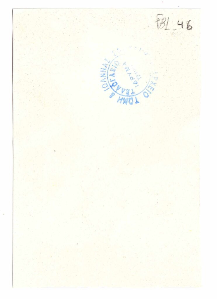 Απόκομμα, χαρτί, 12,5×8,5 εκ., με αναπαραγωγή έργου του Γιώργου Βακαλό.