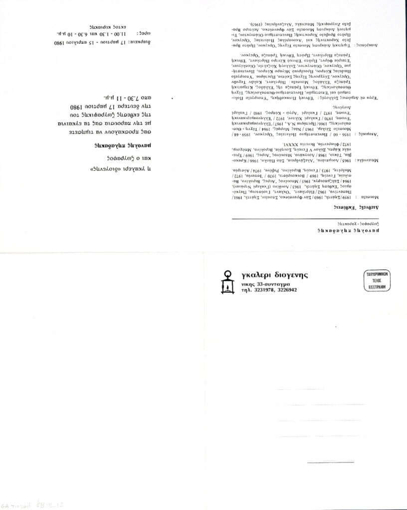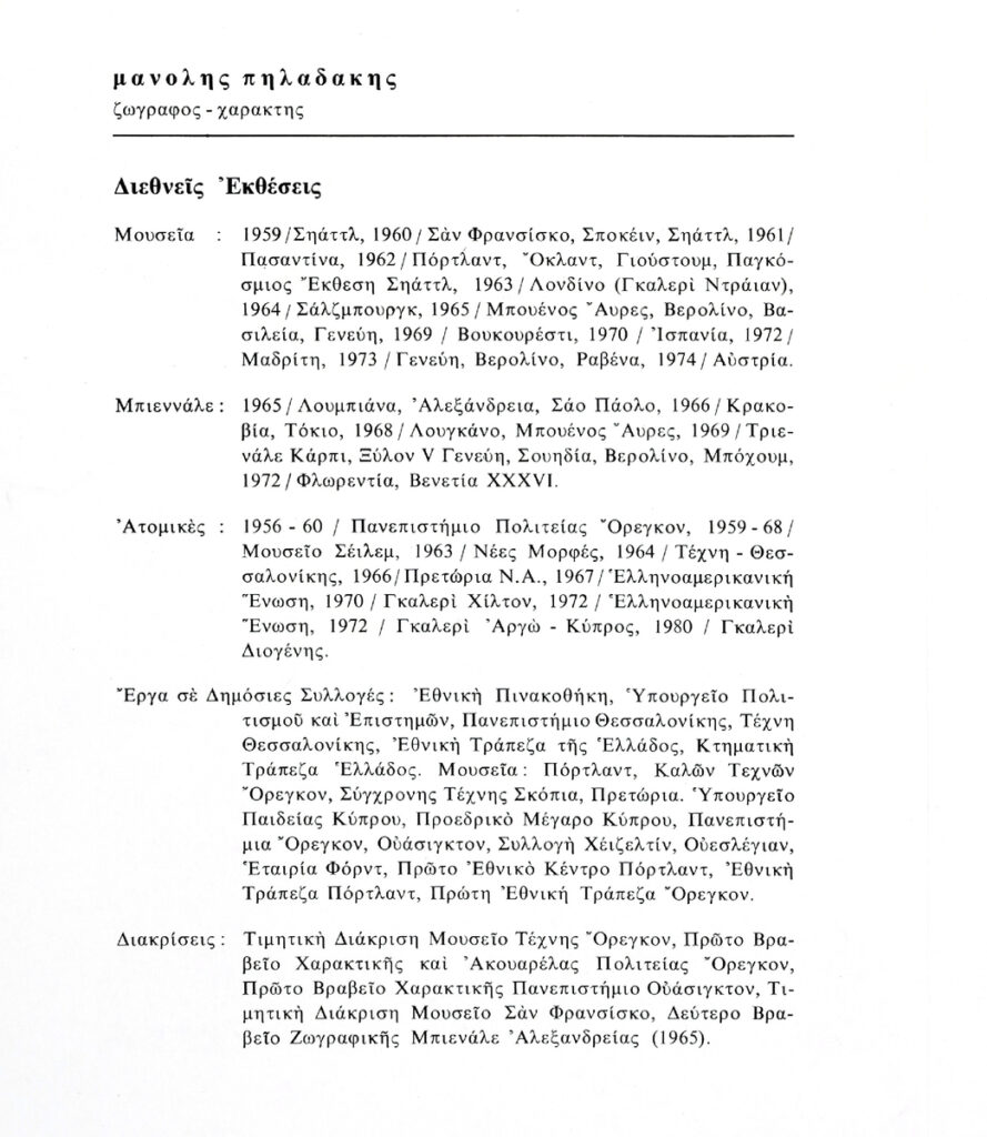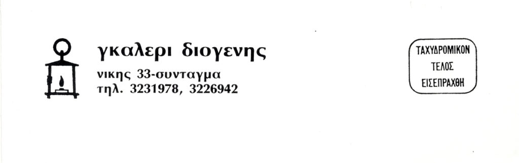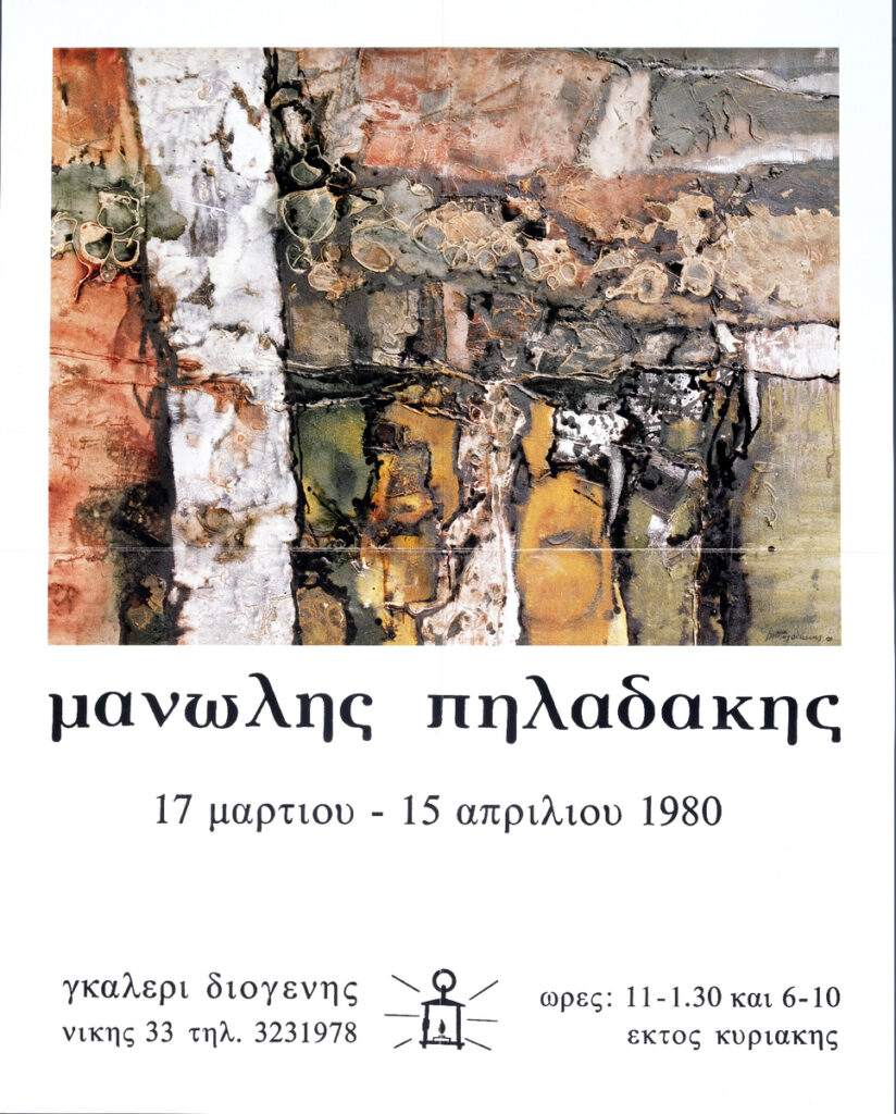 Έντυπο έκθεσης του Μανώλη Πηλαδάκη, η οποία διεξάγεται στην Γκαλερί Διογένης στην Αθήνα.