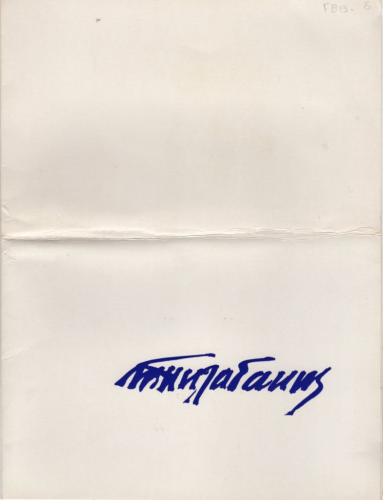 Έντυπο, φάκελος και 6 φφ,28×21 εκ., στα αγγλικά, έκθεσης του Μανώλη Πηλαδάκη.