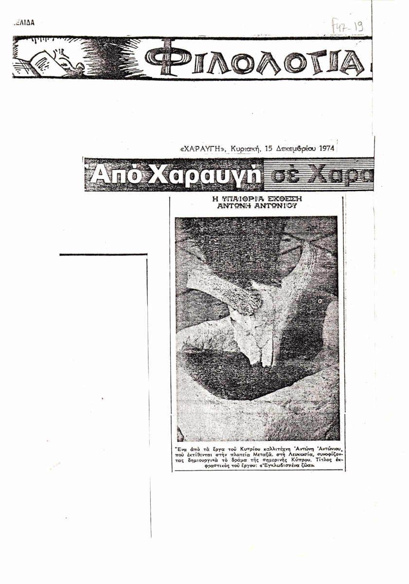 Φωτοαντίγραφο, χαρτί, 29,5×21εκ, στα ελληνικά, με αναπαραγωγή έργου του Αντώνη Αντώνιου.