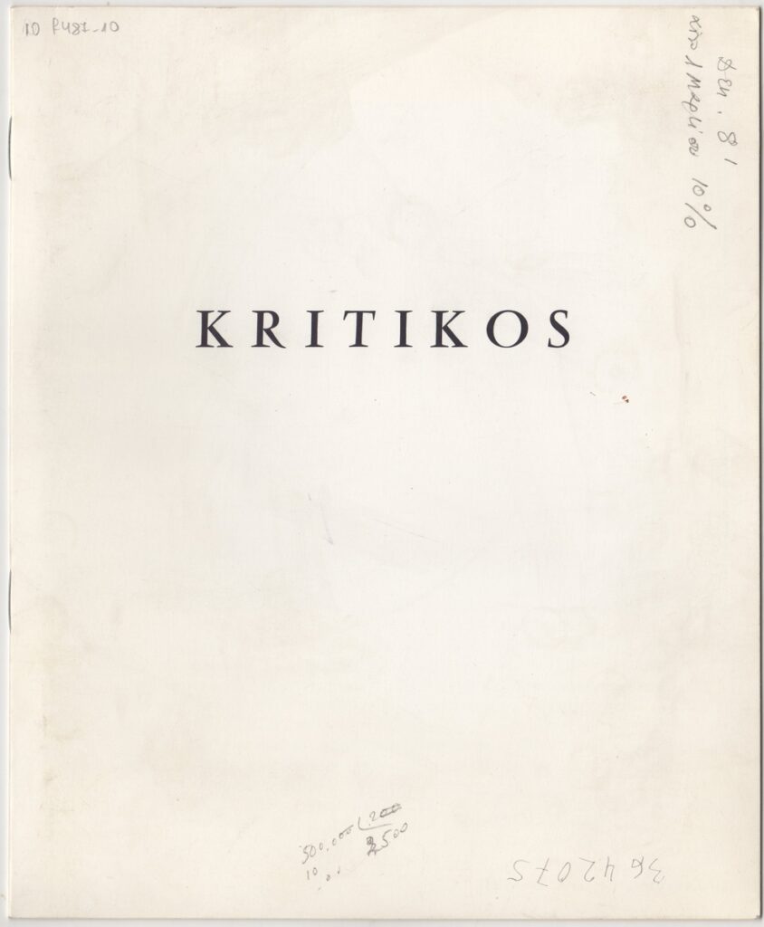 Έντυπο, χαρτόνι, 4 φφ, 24×19,5 εκ., στα γαλλικά, ατομικής έκθεσης του Μπάμπη Κρητικού. Περιέχει κριτική για το έργο του από τον Jean Luc Chalumeau, βιογραφικό και εικονογράφηση
