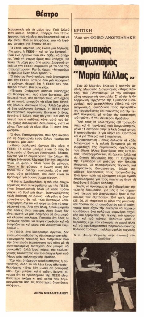 Στην πίσω όψη, υπάρχει απόσπασμα κριτικής του Φοίβου Ανωγειανάκη για τον Μουσικό Διαγωνισμό “Μαρία Κάλλας”.