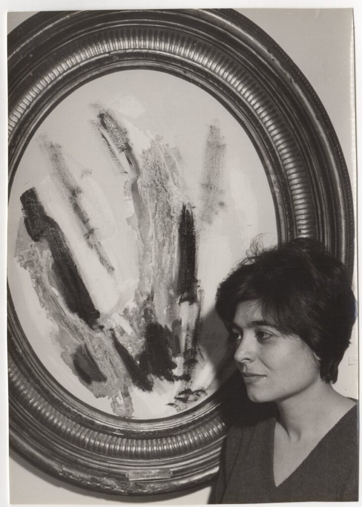Φωτογραφία, α/μ, φωτογραφικό χαρτί, 24×17 εκ., έργου της Τίτας Κριεζή, με εικονιζόμενη την ίδια μπροστά σε αυτό.