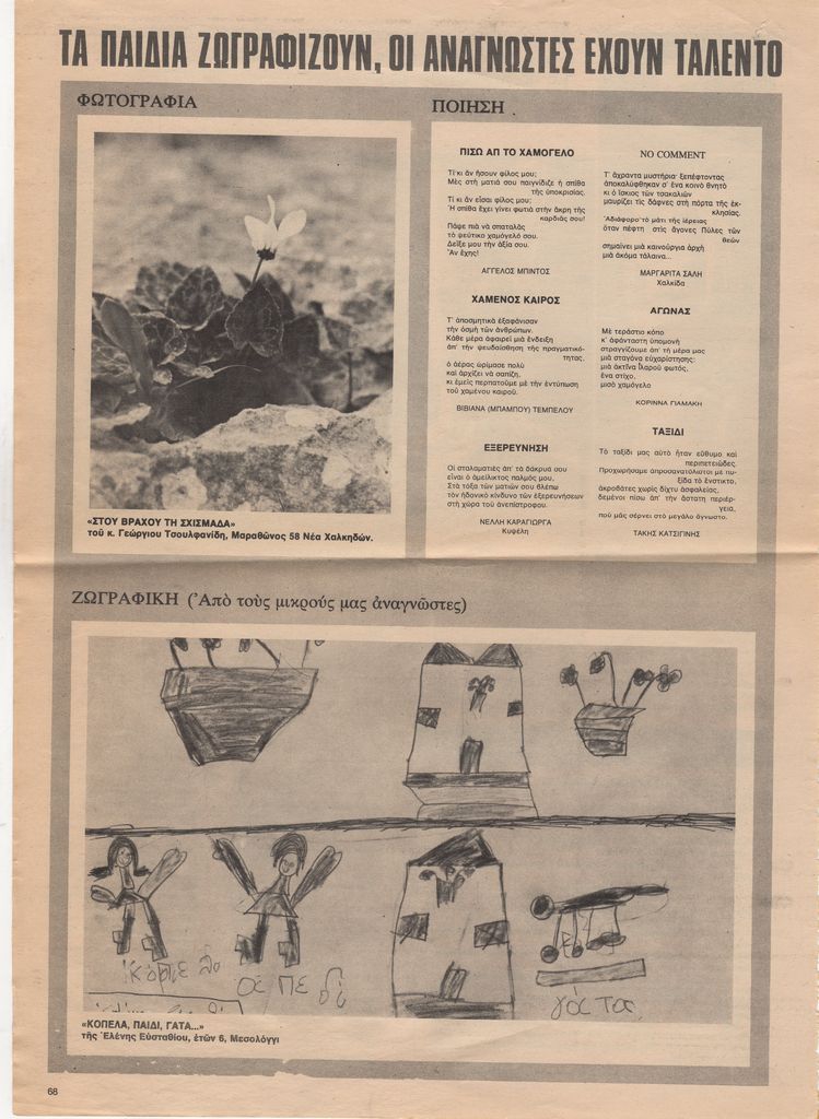Στο ίδιο, “Το έπος και η αποσιώπηση”, συνέντευξη σκηνοθέτη της ομάδας “Θιάσου” και στήλη αναγνωστών του εντύπου.