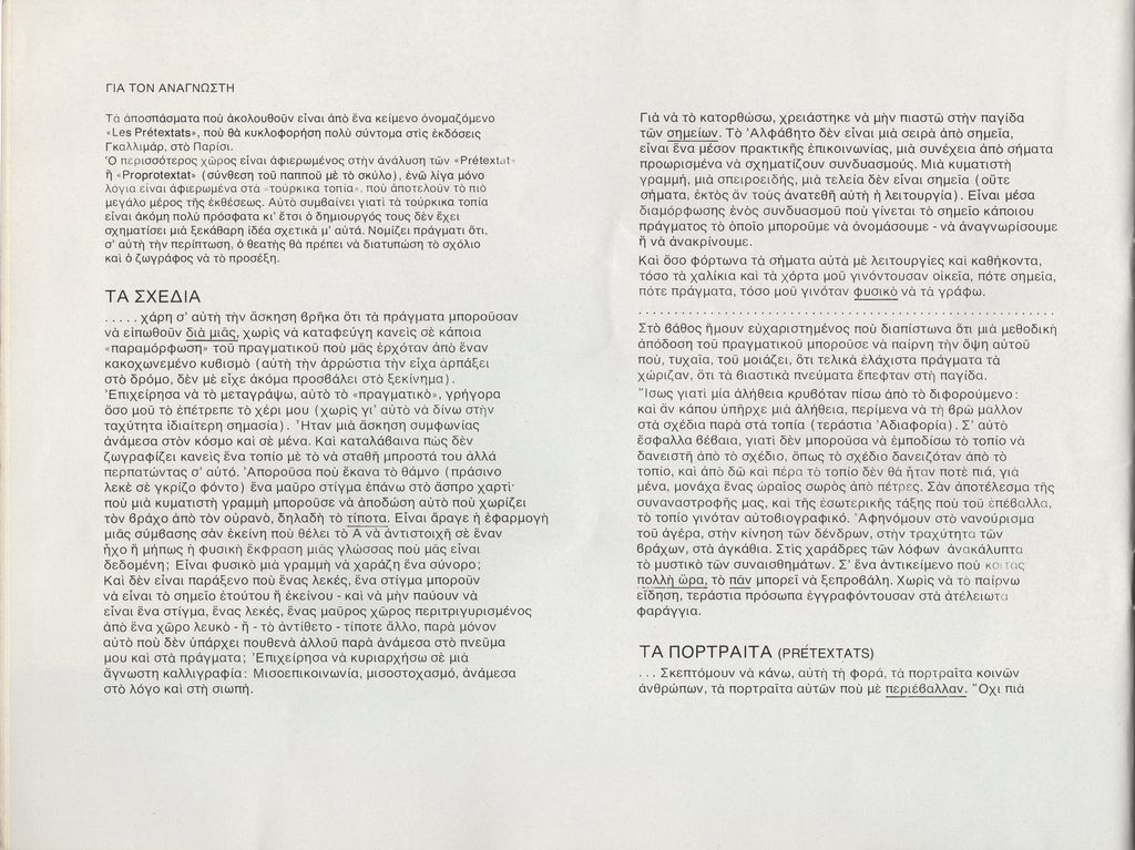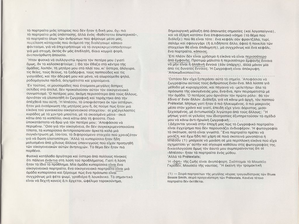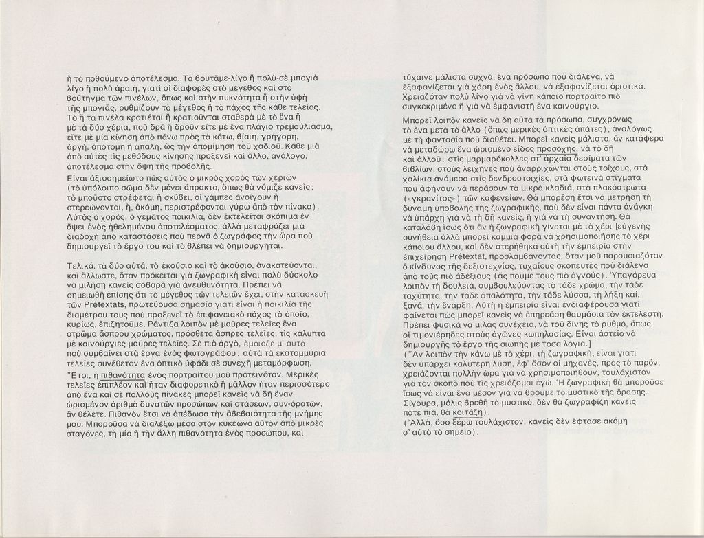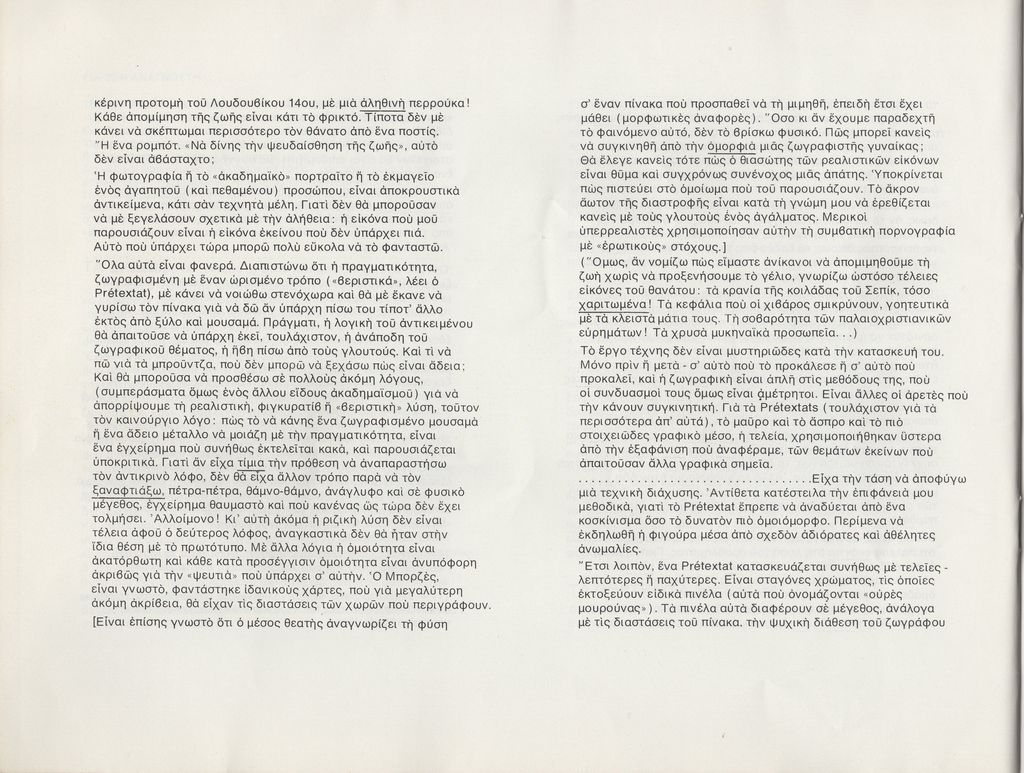 Περιέχει κείμενα του καλλιτέχνη για τα έργα του, βιογραφικό σημείωμα, κατάλογος των έργων που εκτίθενται και εικονογράφηση.