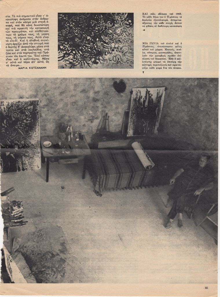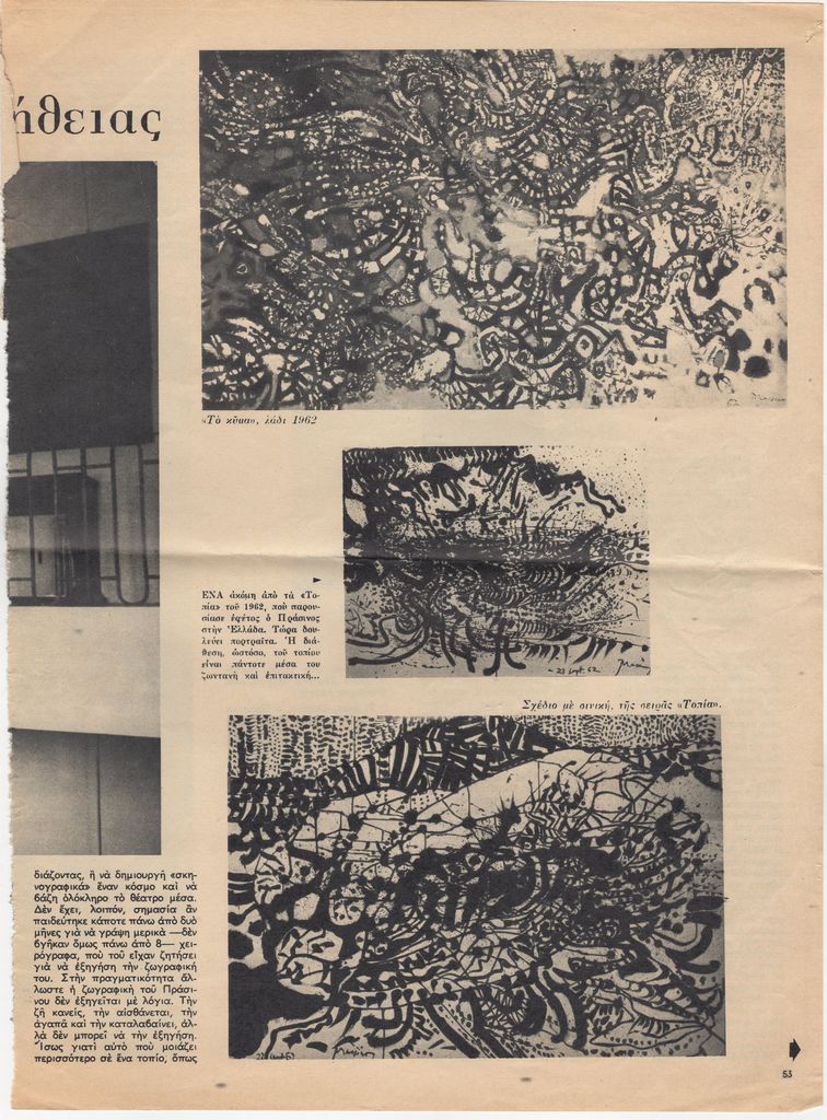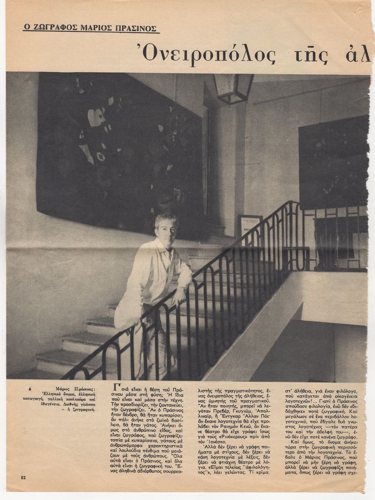Απόκομμα, χαρτί, 3 φφ, 33,5×24,5 εκ., στα ελληνικά, δημοσίευσης άρθρου αναφερόμενου στη ζωή και στο έργο του Μάριου Πράσινου.
