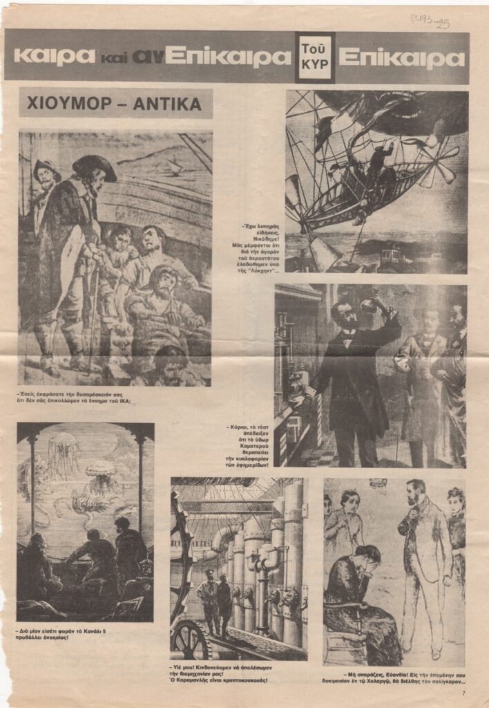 Απόκομμα, χαρτί, 33,5×24 εκ., δημοσίευσης με εικονογράφηση και σατυρικές επιγραφές του ΚΥΡ (Γιάννη Κυριακόπουλου).