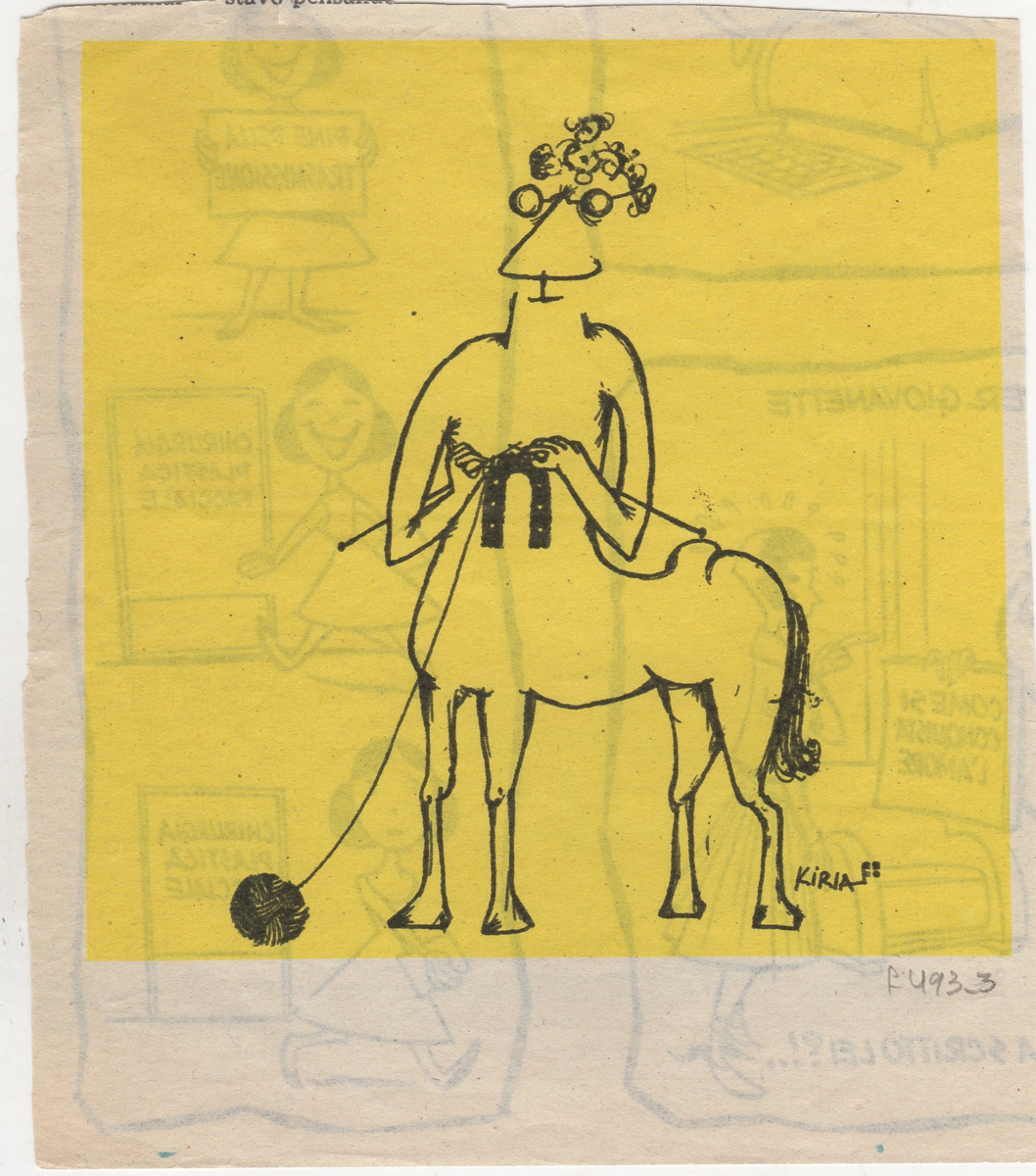 Απόκομμα, χαρτί, 15,5×13 εκ., δημοσίευσης γελοιογραφίας του ΚΥΡ (Γιάννη Κυριακόπουλου), έγχρωμη.