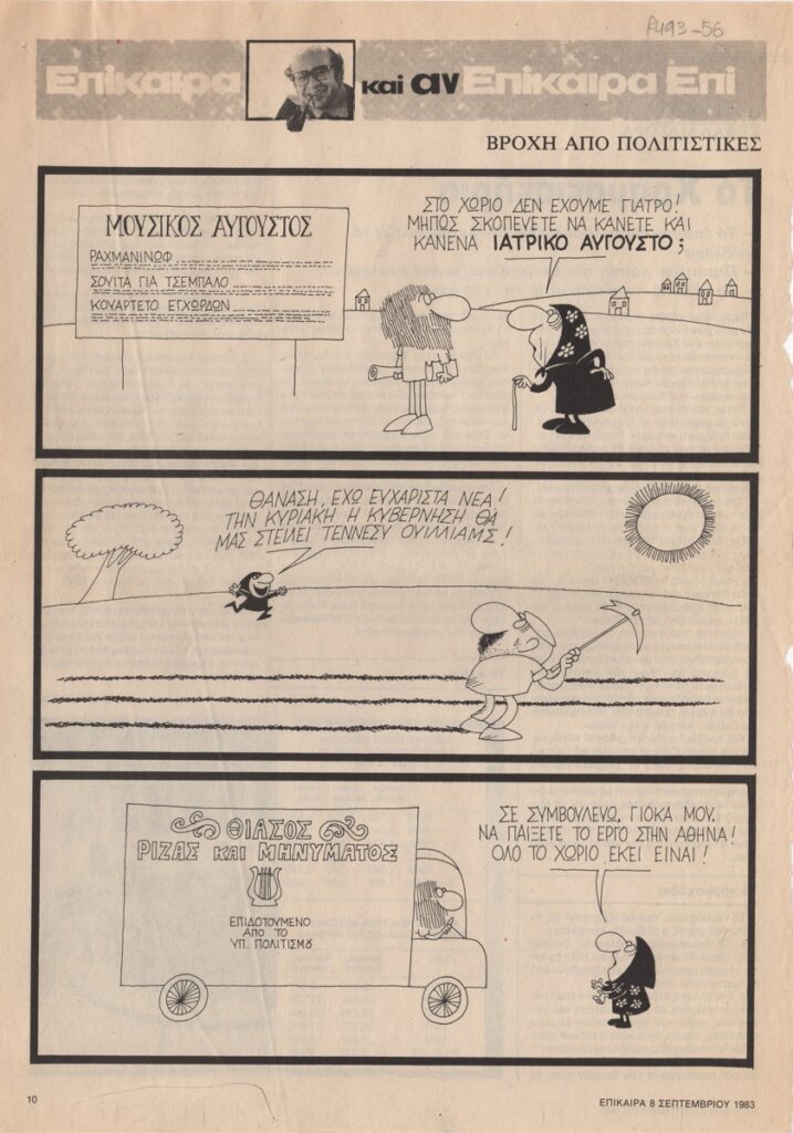 Γελοιογραφία “Βροχή από πολιτιστικές εκδηλώσεις στην επαρχία!”