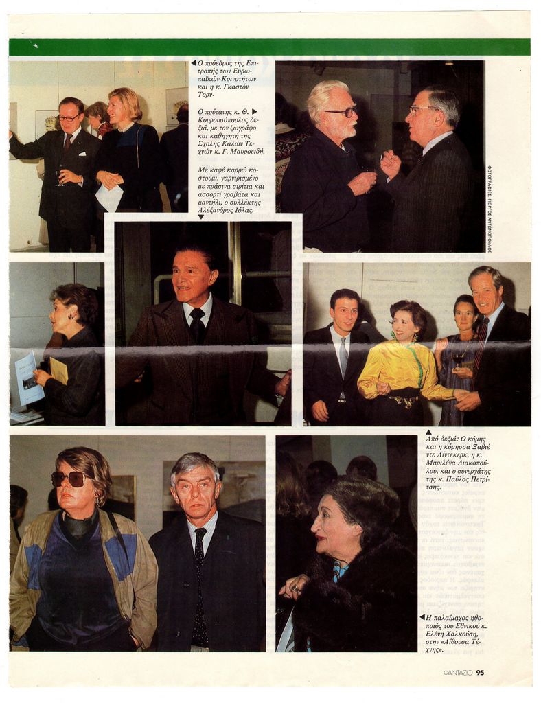 Απόκομμα, έντυπο, χαρτί ιλουστρασιόν, 2 φφ., 29,7×23,2 εκ., όπου δημοσιεύεται, στα ελληνικά, φωτορεπορτάζ από τα εγκαίνια της ατομικής έκεσης του Πάρη Πρέκα στην Αίθουσα Τέχνης Αθηνών.