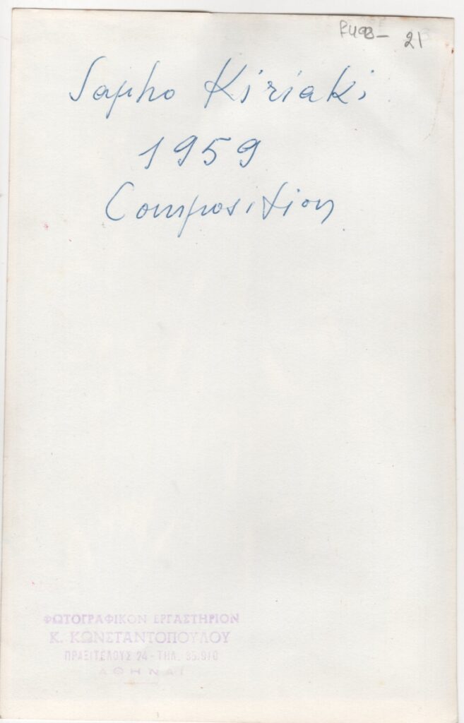 Φωτογραφία έργου, α/μ, σε φωτογραφικό χαρτί, 18,2×11,5 εκ. Στην πίσω όψη επιγραφές με τα στοιχεία του έργου.