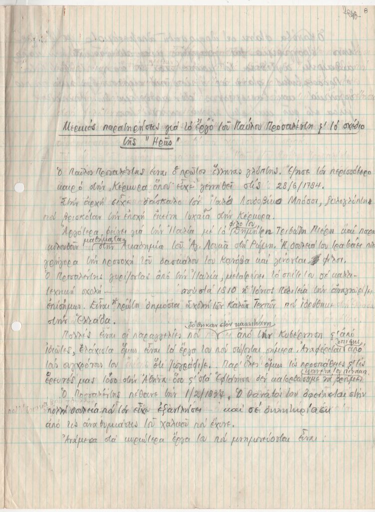 «Μερικές παρατηρήσεις για το έργο του Παύλου Προσαλέντη και το σχέδιο της “Ηρώς”»
