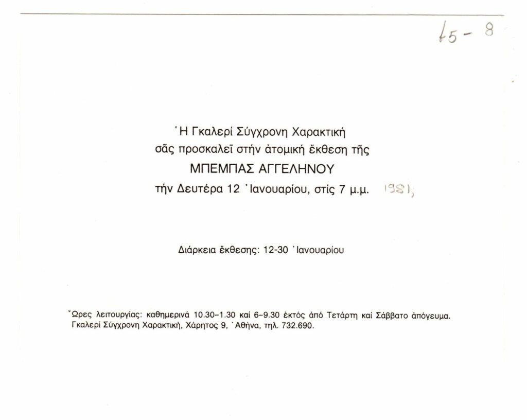 Αγγεληνού Μπέμπα : Ατομική έκθεση, 12/01/1981 - 30/01/1981