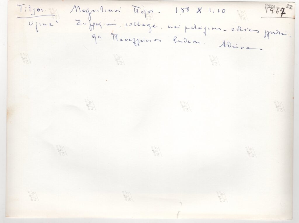 Φωτογραφία έργου, α/μ, σε φωτογραφικό χαρτί, 17,8×23,5 εκ. Στην πίσω όψη επιγραφή με τα στοιχεία του έργου.