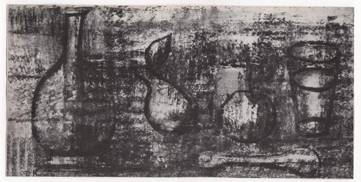 Απόκομμα, έντυπο, χαρτί ιλουστρασιόν, 10,5×21,3 εκ. Αναπαραγωγή έργου της Τέρψης Κυριακού. Στην πίσω όψη επιγραφή.