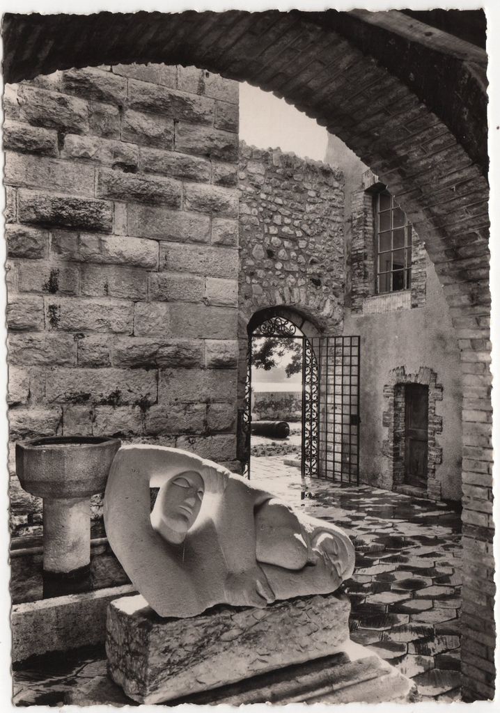 Ταχυδρομική κάρτα, στα γαλλικά, χαρτόνι, δύο όψεις, 10,5×15,0 εκ. Στη μία όψη, αναπαραγωγή φωτογραφίας έργου της Μπέλλας Ραφτοπούλου που είναι τοποθετημένο στην είσοδο του Musée Grimaldi στην Antibes. Η κάρτα έχει εκδοθεί από τις Editions “Mars” στην Νίκαια της Γαλλίας.