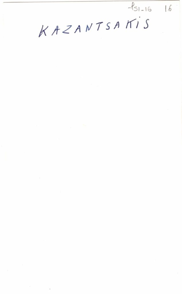Φωτογραφία, α/μ, φωτογραφικό χαρτί, 17,5×11,5εκ, προτομής του Νίκου Καζαντζάκη, έργο του Θανάση Απάρτη. Η πίσω όψη φέρει επιγραφή στα γαλλικά.