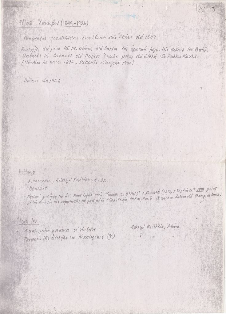 Φωτοαντίγραφο χειρόγραφου βιογραφικού σημειώματος, χαρτί, 29.5×21 εκ., στα ελληνικά, του Ιάκωβου Ρίζου. Περιέχει σπουδές, μετακινήσεις, εργογραφία και βιβλιογραφία.
