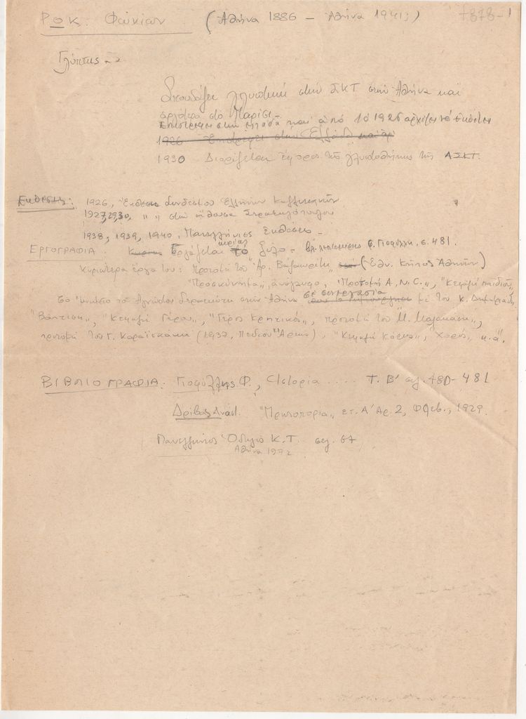 Βιογραφικό, χειρόγραφο, χαρτί, 29×21 εκ., στα ελληνικά, του Φωκίωνα Ρωκ.
