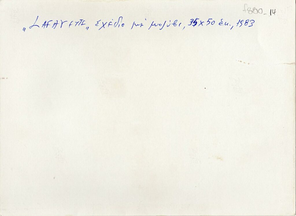 "Lafayette", σχέδιο με μολύβι, 35x50 εκ., 1983 (στην πίσω όψη, χειρόγραφη, με μπλε μελάνι, στα γαλλικά και ελληνικά)