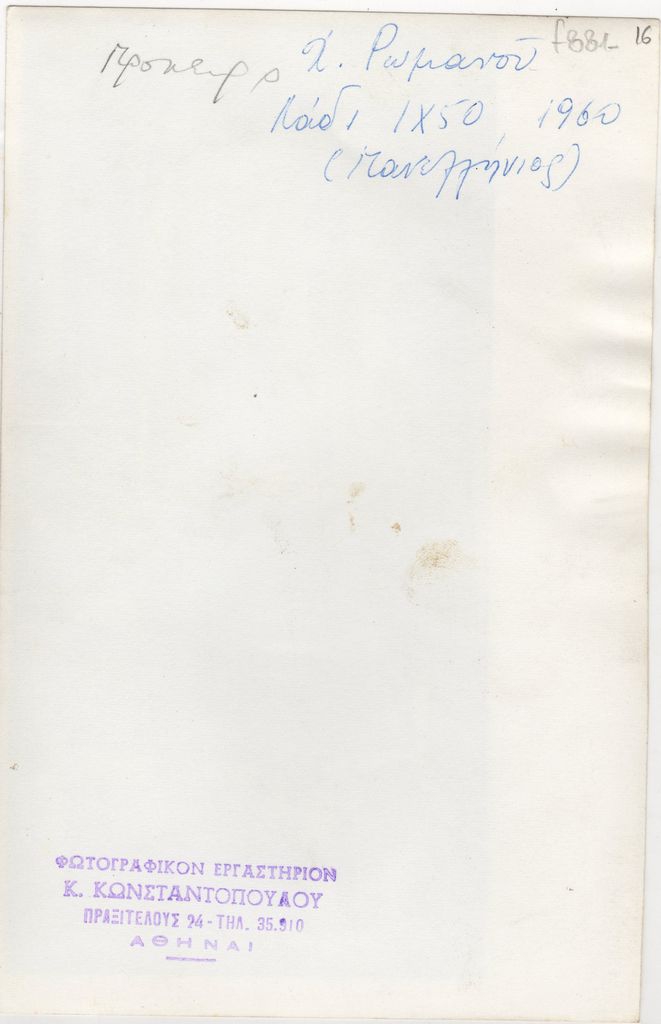 Κούλα Μπεκιάρη (1905 - 1992) ; Φωτογραφικόν εργαστήριον Κωνστ. Κωνσταντόπουλου