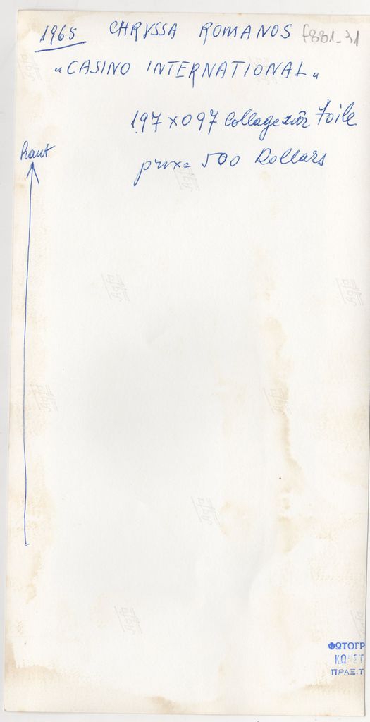 Φωτογραφία, α/μ, φωτογραφικό χαρτί, 24×12,5 εκ., έργου της Χρύσας Ρωμανού.
