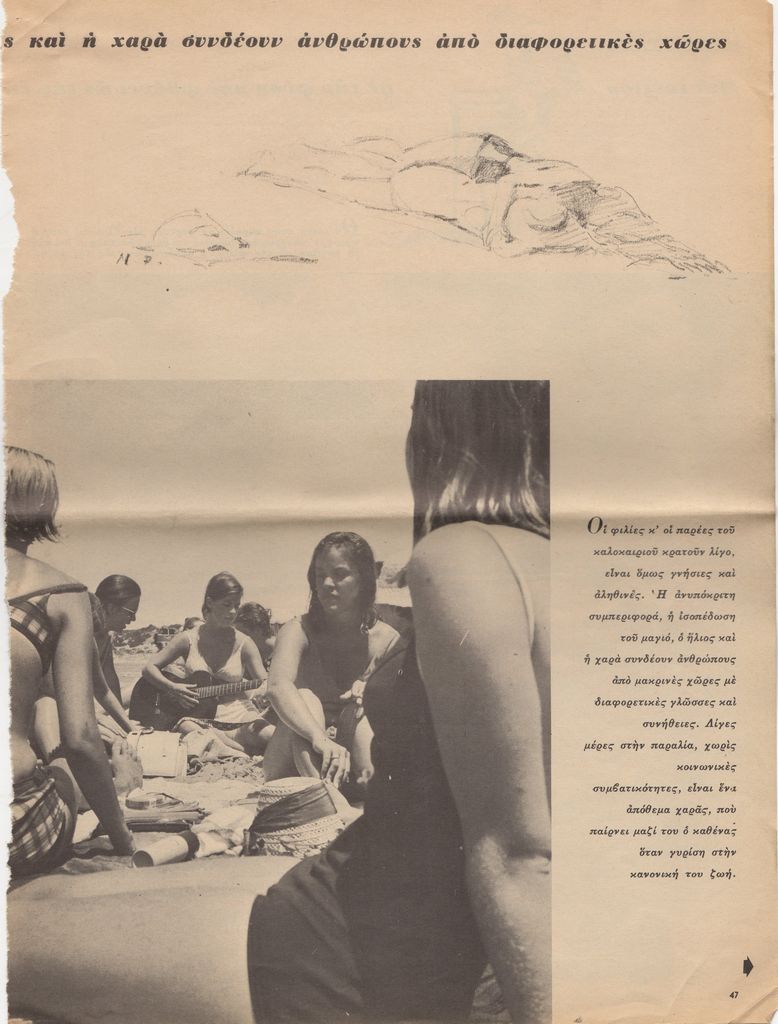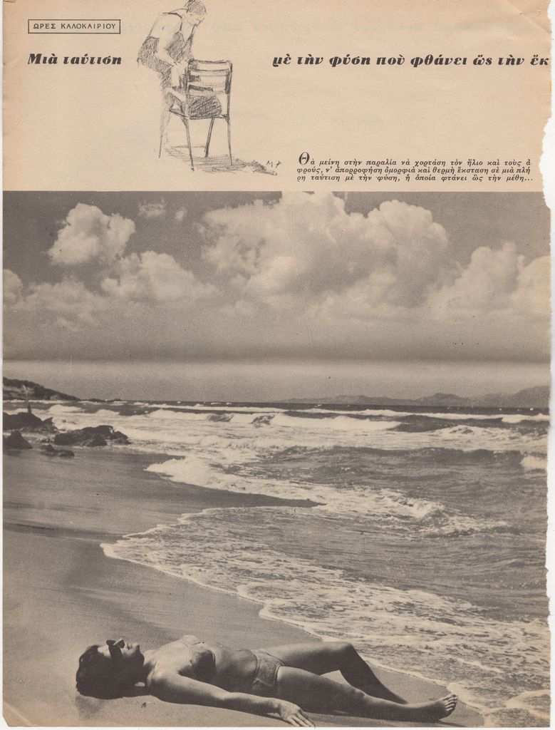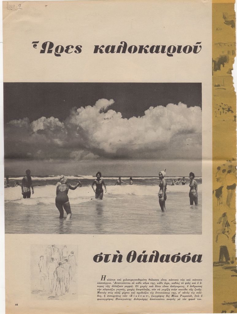 Απόκομμα, χαρτί, 4 φφ, 33×25 εκ., στα ελληνικά, δημοσίευσης άρθρου για τη θάλασσα το καλοκαίρι.
