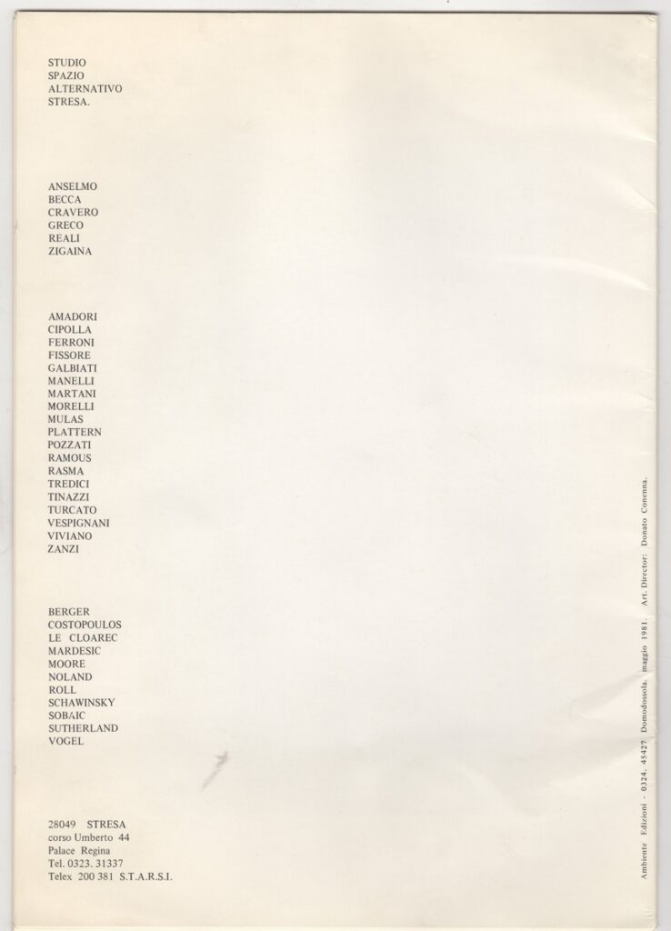 Έντυπο, χαρτόνι, 6 φφ, 30×21 εκ., στα ιταλικά, έκθεσης της Δάφνης Κωστοπούλου. Περιέχει κείμενο/ κριτική του René Berger, βιογραφικό σημείωμα και εικονογράφηση.