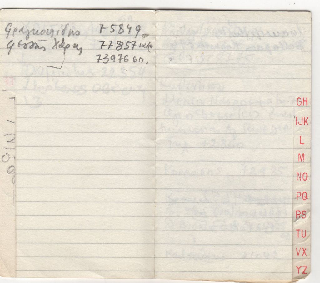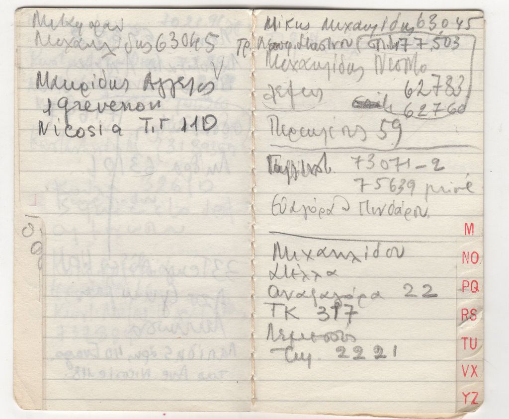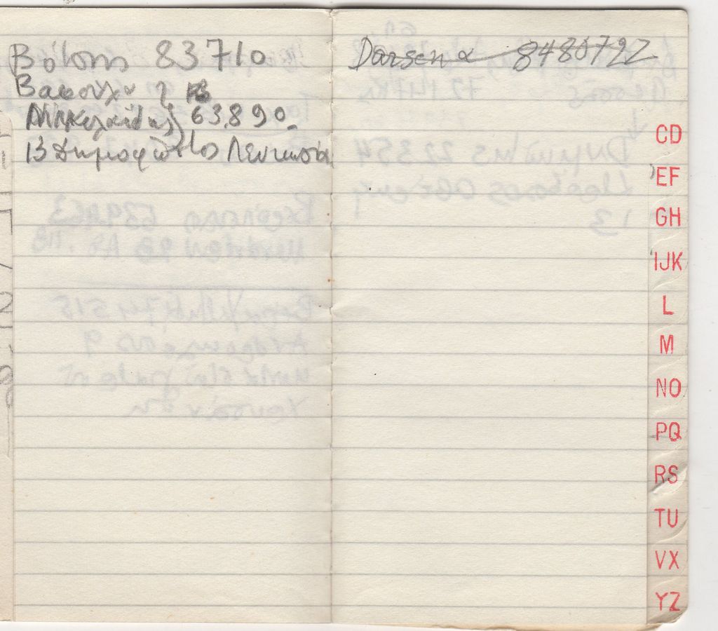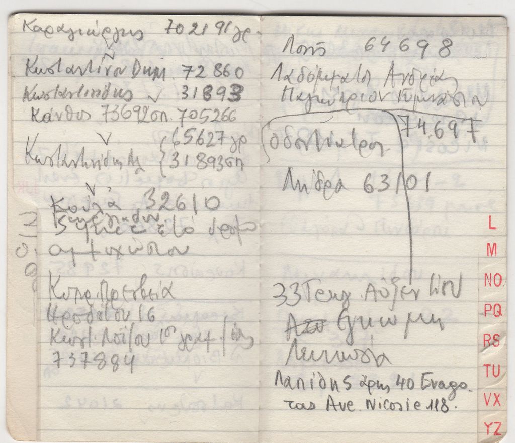 Τηλεφωνική ατζέντα, χαρτί, 10×6 εκ., με χειρόγραφες σημειώσεις, στα ελληνικά.