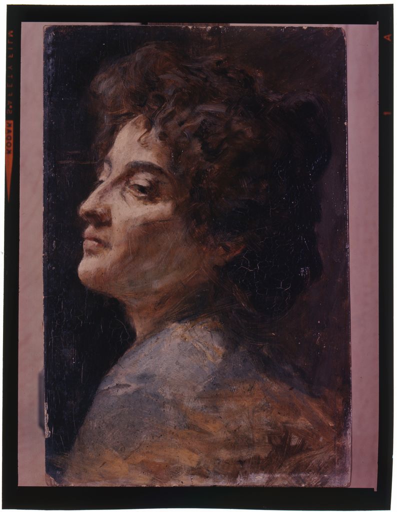 Διαφάνεια, έγχρωμη, 8,0×6,2 εκ. Αναπαραγωγή του έργου του Συμεών Σαββίδη «Κεφάλι φίλης».