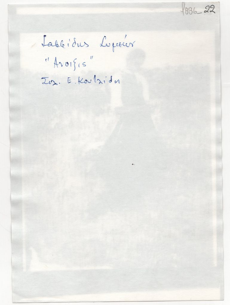 Φωτοαντίγραφο αποκόμματος εντύπου, χαρτί, 18,0×12,8 εκ., δημοσιεύεται, αναπαραγωγή έργου του Συμεών Σαββίδη. Στην πίσω όψη, επιγραφή με τα στοιχεία του έργου.