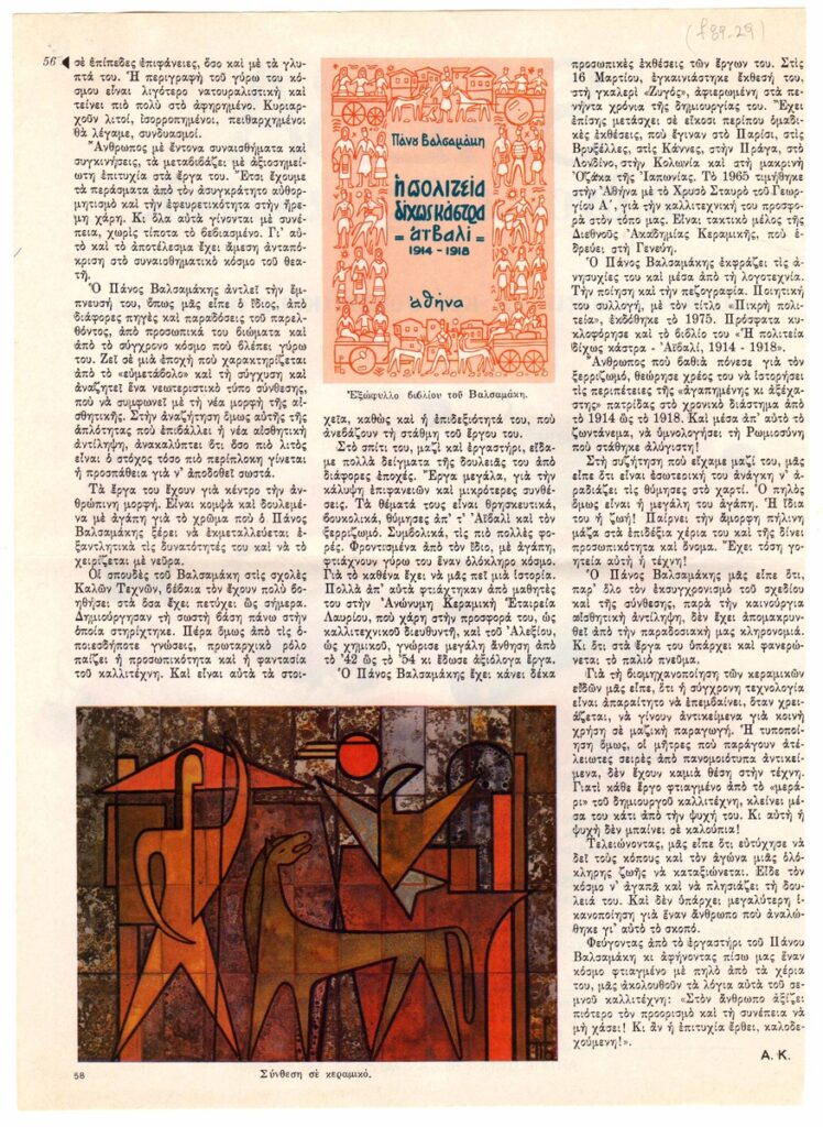 Απόκομμα του περιοδικού “Γυναίκα” (09/05/1979) δημοσίευσης άρθρου για τον Πάνο Βαλσαμάκη.