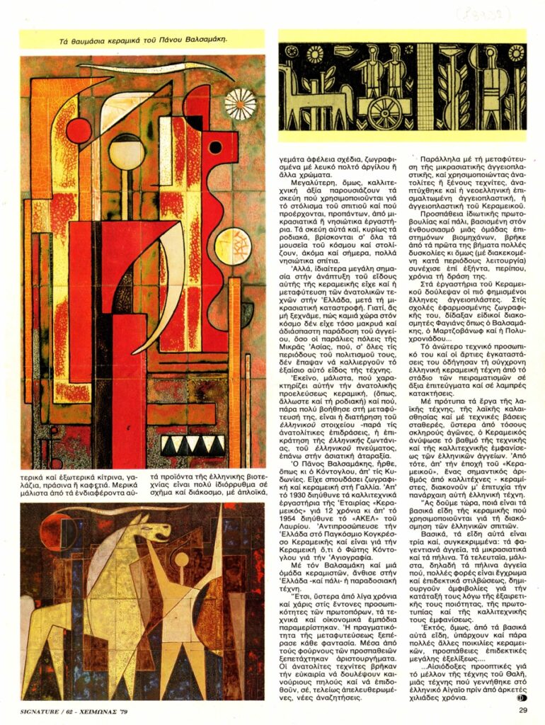 Απόκομμα, χαρτί ιλουστρασιόν, 2 φφ, 28×21 εκ., στα ελληνικά, δημοσίευσης άρθρου για τον Πάνο Βαλσαμάκη.