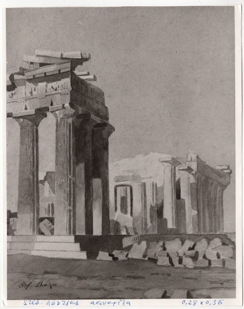 Φωτογραφία έργου, α/μ, σε φωτογραφικό χαρτί, 22,5×18,8 εκ. Αναπαραγωγή έργου του Στέφανου Λάντσα από τη Συλλογή Λαΐου. Στην εμπρόσθια και την πίσω όψη επιγραφή με τα στοιχεία του έργου.
