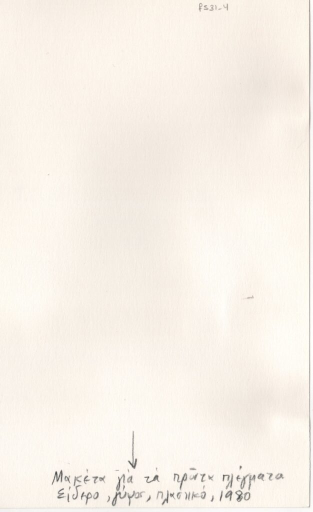 Φωτογραφία έργου, α/μ, σε φωτογραφικό χαρτί, 7,7×10,6 εκ. Επικολημμένη σε χαρτόνι, 35,5×25,0 εκ. μαζί με δεύτερη φωτογραφία έργου του καλλιτέχνη. Στην πίσω όψη του χαρτονιού επιγραφή με τα στοιχεία του έργου.