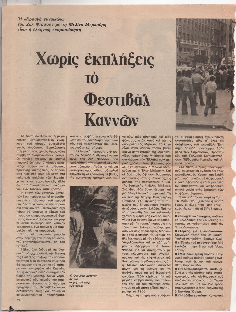 Στην άλλη όψη, απόσπασμα άρθρου για το Φεστιβάλ Κινηματογράφου των Καννών.