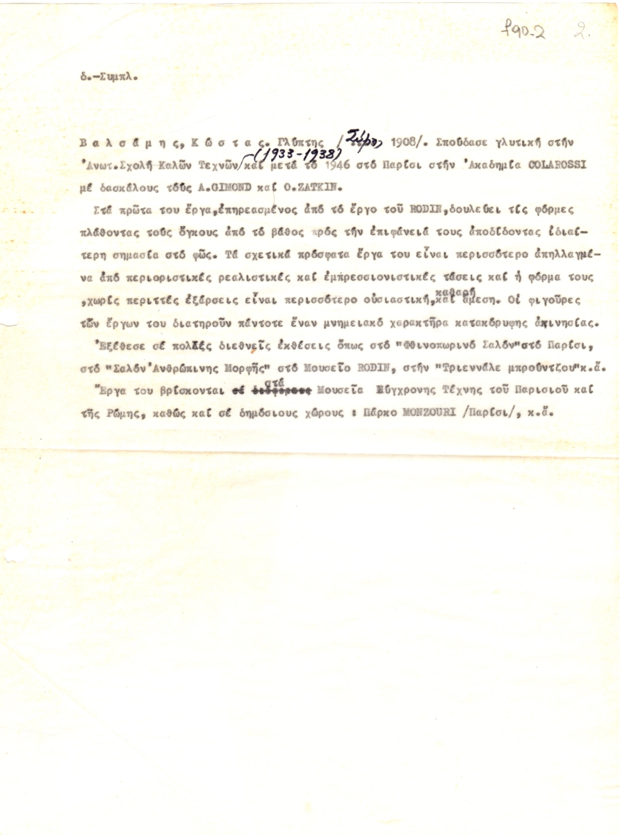 Βιογραφικό, δακτυλόγραφο, ριζόχαρτο, 28,5×21 εκ., στα ελληνικά του Κώστα Βαλσάμη.