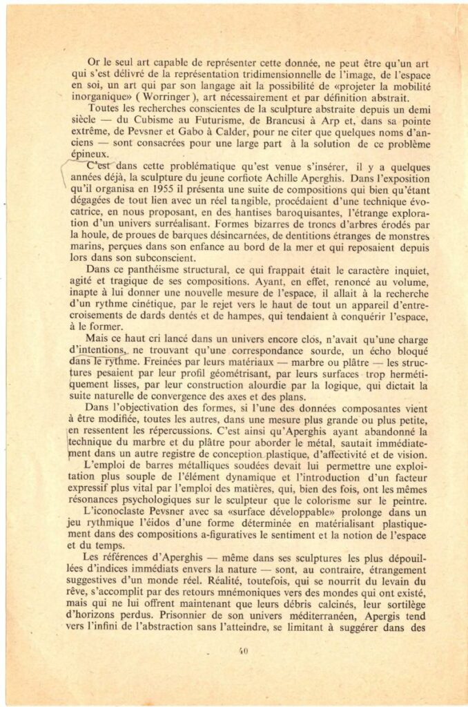 Mouvement et dynamisme latent dans la sculpture d’ Achille Aperghis