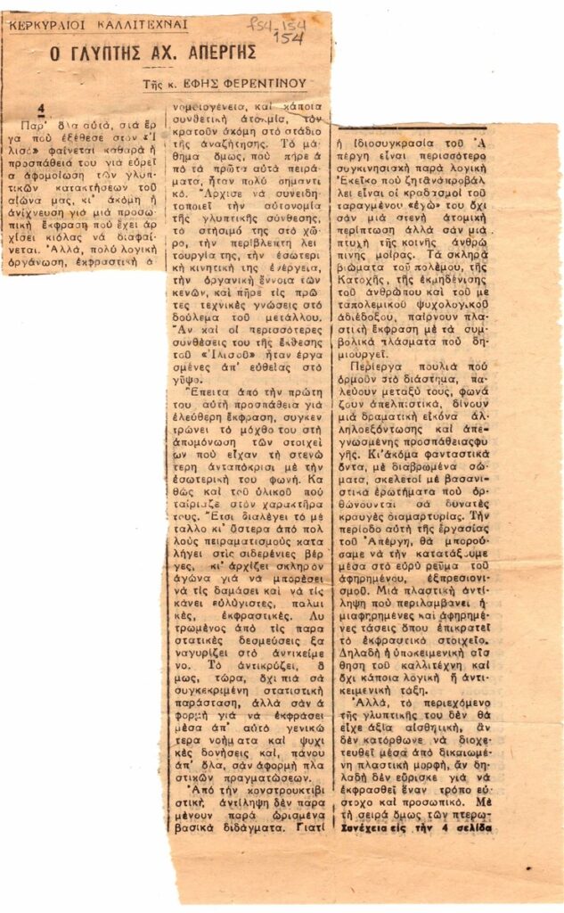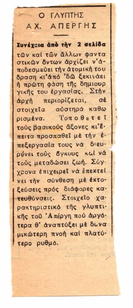 Ο γλύπτης Αχ. Απέργης. 4ο μέρος